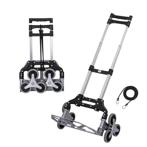 TOPWAY Hopfällbar vagn aluminium trappor klättring vikbar hand lastbil vagn säck brunn 70 kg lastkapacitet justerbar höjd med 6 hjul och sladd för inomhus utomhus resor shopping