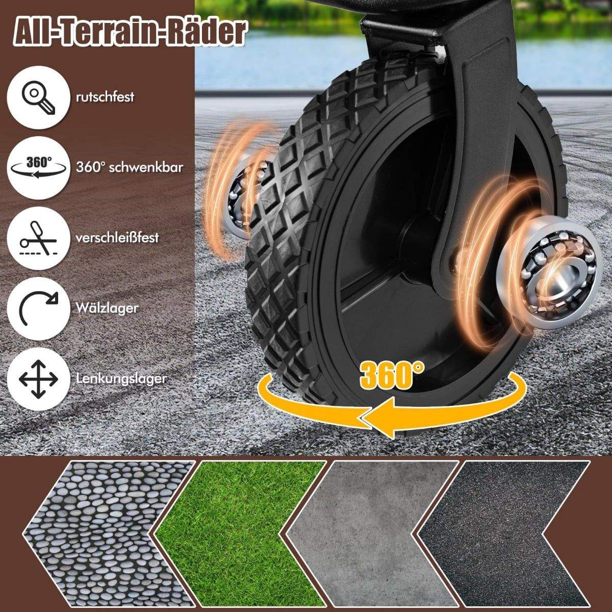 GOPLUS Handkärra vikbar handvagn med 360 graders vridbara hjul, justerbart handtag och mugghållare, 82 l/68 kg, hopfällbar strandvagn, hopfällbar vagn, stege vagn för strand, camping, shopping