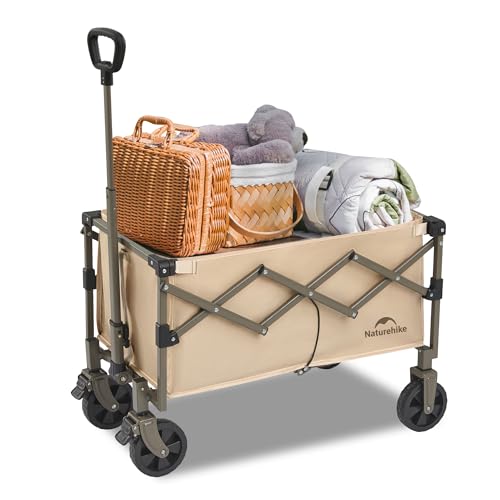 Naturehike handvagn hopfällbar vagn, lastkapacitet 120 kg extra stor kapacitet utomhus vikbar verktygslåda med justerbar vagn för camping, shopping, strand (brun, XL)