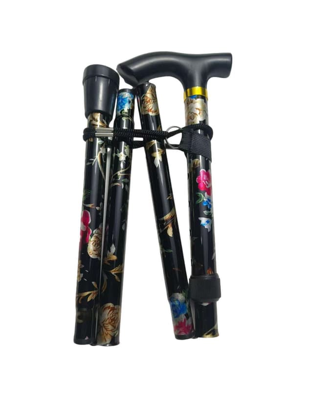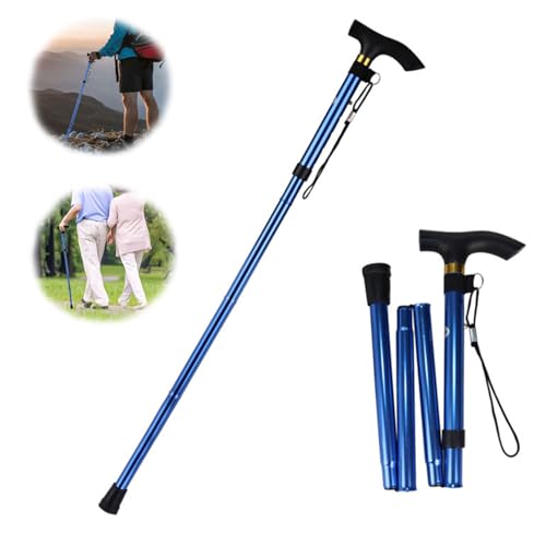 Hopfällbar vandringsstav i aluminium, 4 sektioner, vikbar, bärbar vandringsstav, 5-stegs höjdjusterbar käpp, för vandring, camping, bergsklättring, vandring