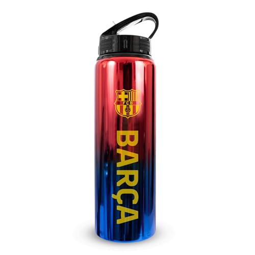 Hy-Pro officiellt licensierad Barcelona F.C 750 ml aluminium UV-flaska, integrerad hopfällbar strå, neokromfinish, läckagesäker, lätt, BPA-fri, barca