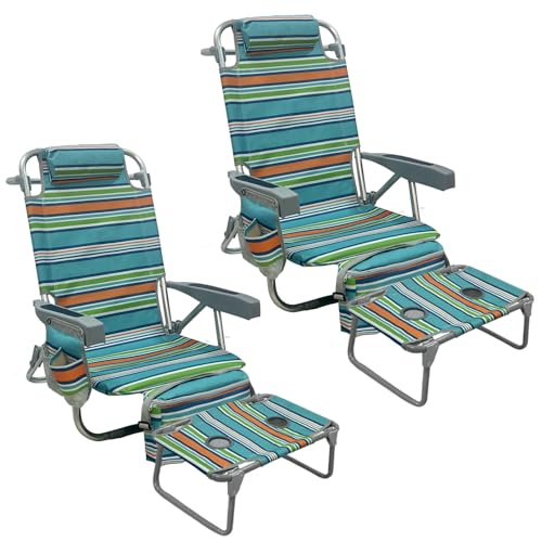 WKFAMOUT Set med 2 hopfällbara strandstolar med 5 justerbara positioner, bärbar hopfällbar stol med hopfällbart bord och isolerad väska för camping, strand, trädgård, vandring, picknick, fiske, orange