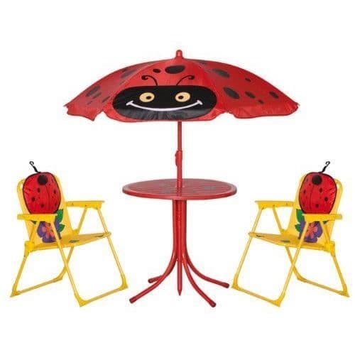 Siena Garden 672618 Marie Barnset 2 hopfällbara fåtöljer 1 Bord 1 Parasoll Stålbaggemönster Gul/Röd...