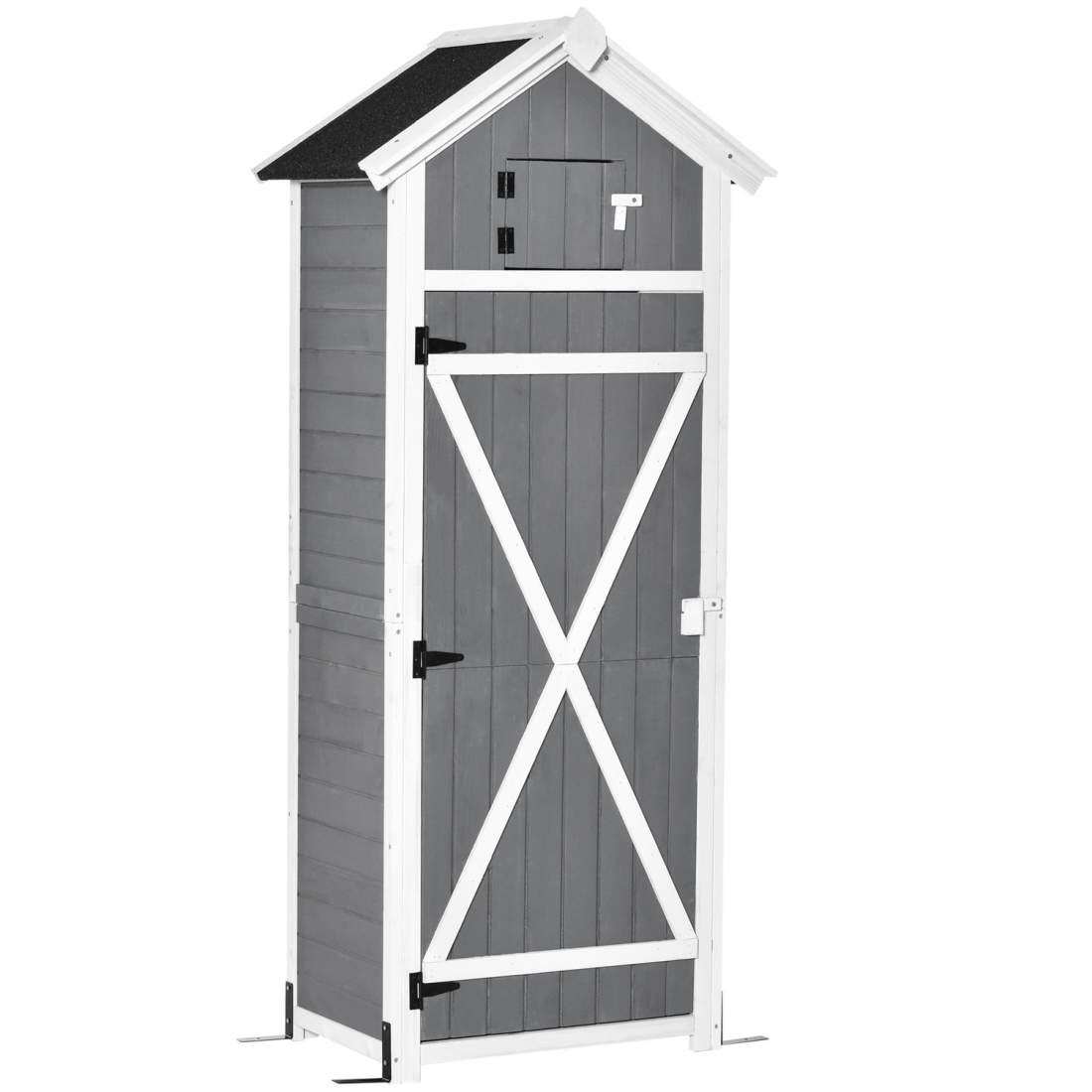 Trädgårdsskåp med dörr och tak, redskapsbod i trä, grå, 78x52,5x182cm, perfekt för trädgårdsförvaring & hopfällbart bord