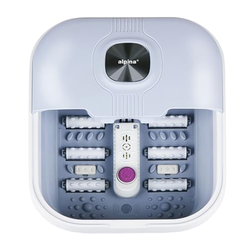 alpina Fötter spa 8L 500W - Uppvärmt hopfällbart fotbad med bubblor - massage- och pimpstensrullar - avslappnande spa för hemmet - ljusblå