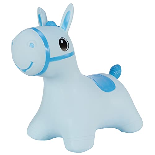 Hoppimals Hopphäst, BLÅ, Uppblåsbart Hoppdjur som studsleksak för barn från 12 månader 1år, Present kartong och pump inkluderad, BPA-fri, Gjord utav mjukt hudvänligt syntetiskt gummimaterial
