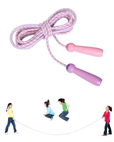 OTraki Hopprep barn 1-pack justerbar hopprep för flickor med trähandtag hopprep med färgglada bomullsrep för skolsporter och utomhusaktiviteter - Rosa