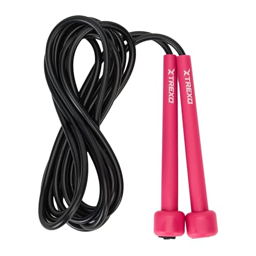 TREXO BASIC hopprep fitness i rosa med justerbar längd upp till 275 cm hopprep justerbar perfekt för träning av PVC och PP med justerbara handtag lätt och bekväm