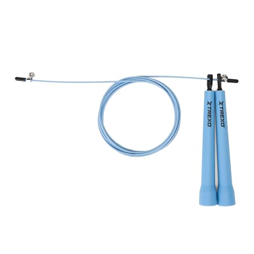 TREXO Basic hopprep fitness i blått med justerbar längd upp till 300 cm perfekt för kardio- och fitnessövningar av PP och stål lätt och bekväm att använda med plasthandtag