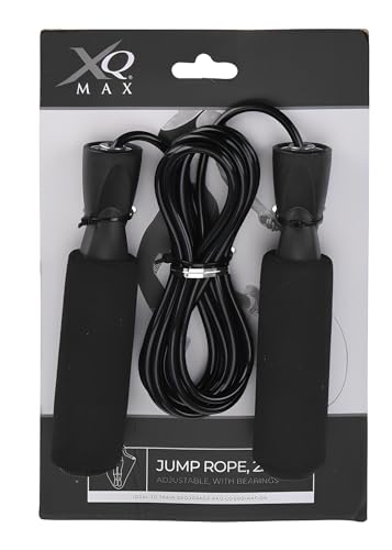 TREXO BASIC + hopprep fitness i svart med justerbar längd upp till 300 cm perfekt för kardio- och fitnessövningar av PP och stål, lätt och bekväm att använda med plasthandtag