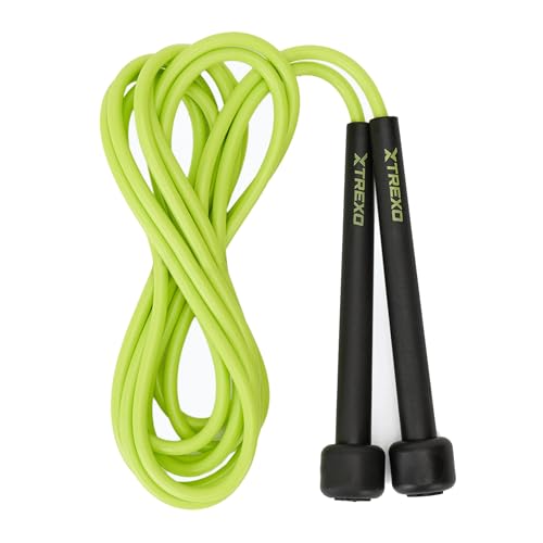 TREXO BASIC hopprep fitness i lime med justerbar längd upp till 275 cm hopprep justerbar perfekt för träning av PVC och PP med justerbara handtag lätt och bekväm