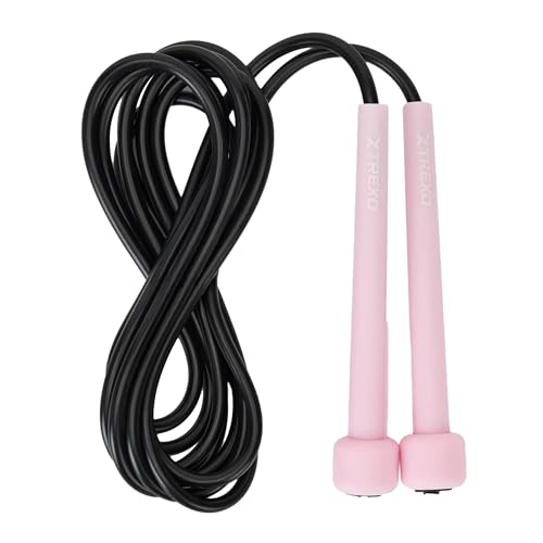 TREXO BASIC hopprep fitness i ljusrosa med justerbar längd upp till 275 cm hopprep justerbar perfekt för träning av PVC och PP med justerbara handtag lätt och bekväm
