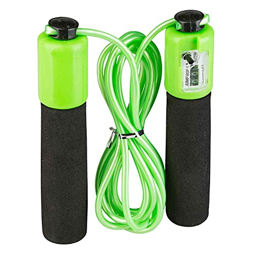 Idena 40186 40186-hopprep med mjuka handtag och mätare, längd 2,2 m, för barn och vuxna, för rörelselekar, som fritidssporter, för tricks och uthållighetsträning, grön