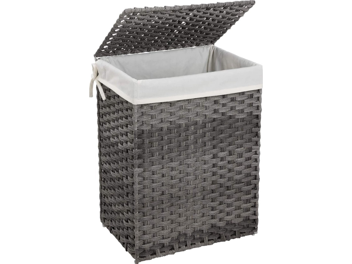 Songmics Handvävd Tvättkorg, 90 L Tvättkorg I Syntetrotting Med Lock Och Handtag, Hopfällbar, Avtagbar Väska Med W