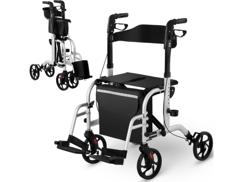 Uniprodo Rehabiliteringsrullator 2 I 1 Med Rullstolsfunktion, Hopfällbar Med Väska Upp Till 136 Kg
