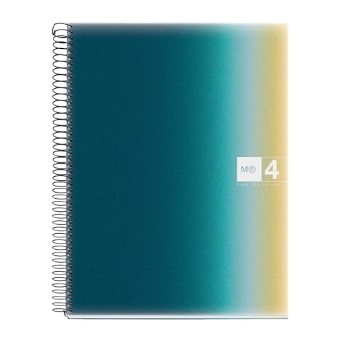 Miquelrius A4 anteckningsbok, 7 mm horisontell linje, 120 ark, 70 g/m² ark, 4 färgade ränder, mikroperforerad spiral, polypropylenskydd, 4 borrar A4 Notebook A4 Aurora Santorini