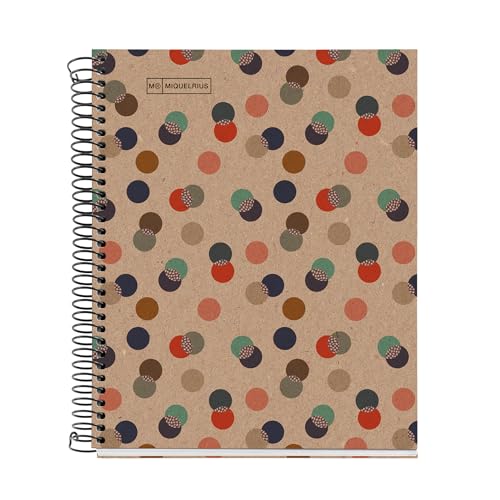 Miquelrius - A4 anteckningsbok, 7 mm horisontell linje, 80 g/m² återvunnet papper, 80 ark i en färg, återvunnen anteckningsbok, spiral, linjerad anteckningsbok, Eco Confetti