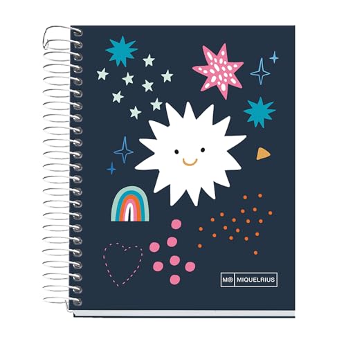 Miquelrius - A5 anteckningsbok, 7 mm horisontell linje, 80 g/m² återvunnet papper, 80 ark i en färg, återvunnen anteckningsbok, spiral, linjerad anteckningsbok, Eco Confetti