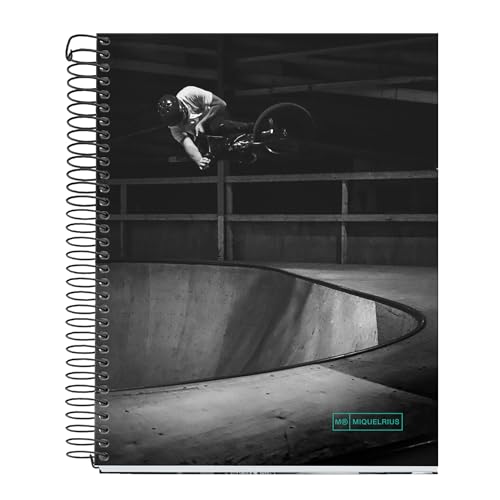Miquelrius - Anteckningsbok A5 140 ark 70 g/m², 7 mm horisontell linje, 4 färgade ränder, 2 borrar, hårt omslag, Skate Park Collection