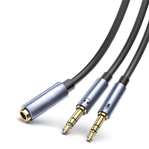 Tymyp Ljudsplitter, hörlursadapter, ljudsplitter, headsetdelare 0,3 m (dubbel 3,5 mm hane till 3,5 mm hona) headset, adapter 1 till 2 uttag för hörlurar, headset, bärbar dator, PC etc