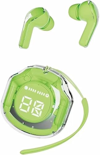 Clear Beat Bluetooth 5.3 trådlösa hörlurar, transparent design, kristallklart ljud, IPX4 vattentät, smartphone laddningsfodral, inbyggd mikrofon, autonomi 2-3 timmar, USB-C (grön)