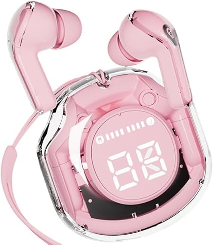 Clear Beat Bluetooth 5.3 trådlösa hörlurar, transparent design, kristallklart ljud, IPX4 vattentät, smartphone laddningsfodral, inbyggd mikrofon, autonomi 2-3 timmar, USB-C (rosa)