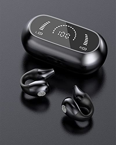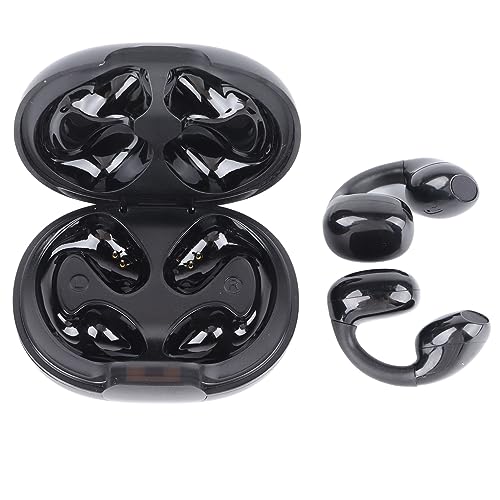 Hörlurar med öppet öron, trådlös Bluetooth-klämma på öronsnäckor, beröringskontroll benledning öronklämma öronsnäckor, HiFi-stereo i örat hörlurar för sport cykling löpning arbete (svart)