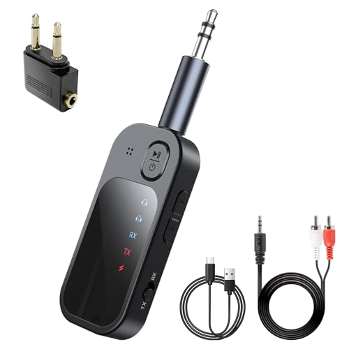 Lonnalee Bluetooth-adapter ljud 5.0, 2-i-1 Bluetooth-sändningsmottagare, Bluetooth-sändare mottagare, uttag 3,5 AUX för hörlurar, högtalare, stereo, TV, bärbar dator