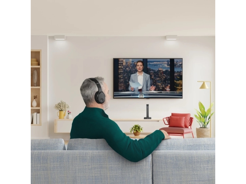 Avantree Quartet 2 – trådlösa hörlurar för grupplyssning med sändare för TV, kyrka, klassrum och silent disco, plug & play, 2.4GHz utbyggbart system med flera hörlurar, låg latens och tydligt tal
