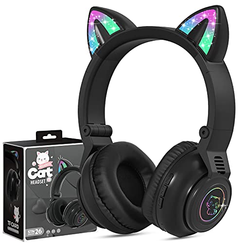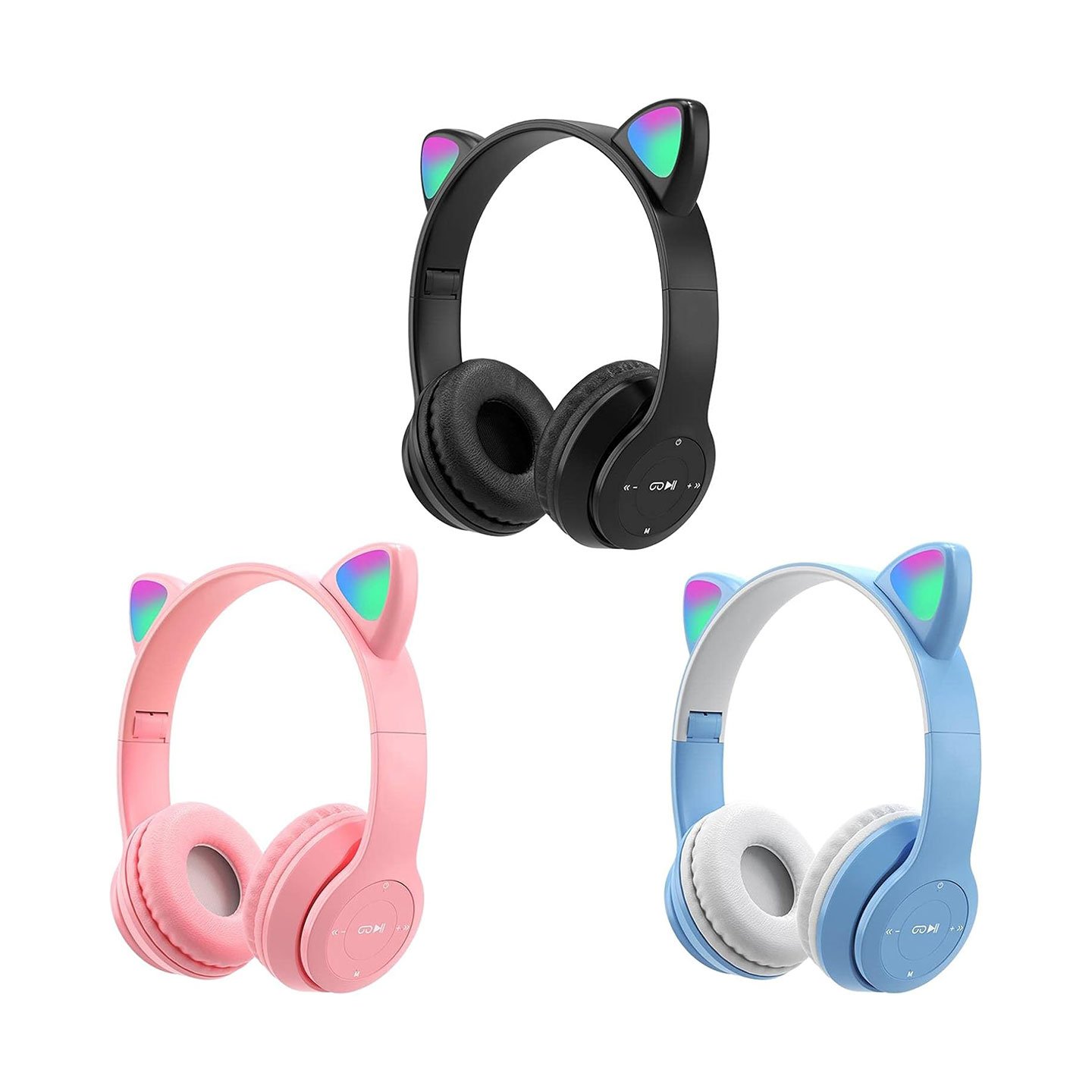 Hörlurar med kattöron, LED-ljus och Bluetooth