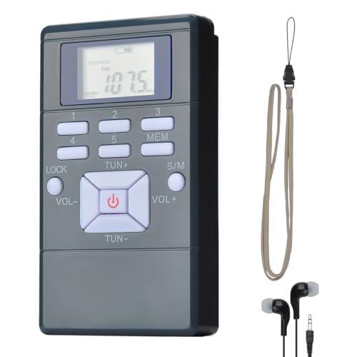 COVVY Bärbar FM stereoradio med hörlurar, minifickstorlek digital tabel-FM Transistor-radio för promenader, löpning, jogging Grått