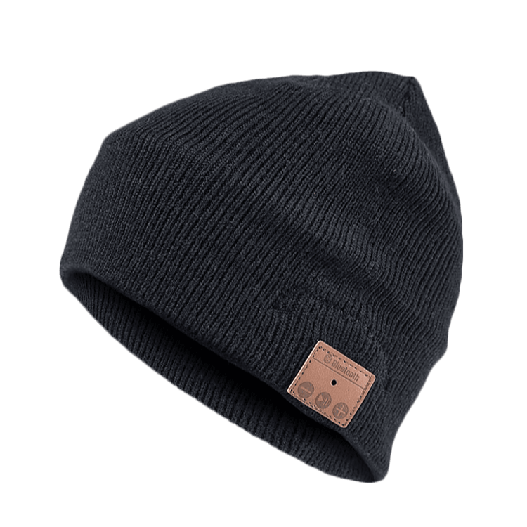 Stickad mössa med inbyggda hörlurar - Bluetooth - Svart