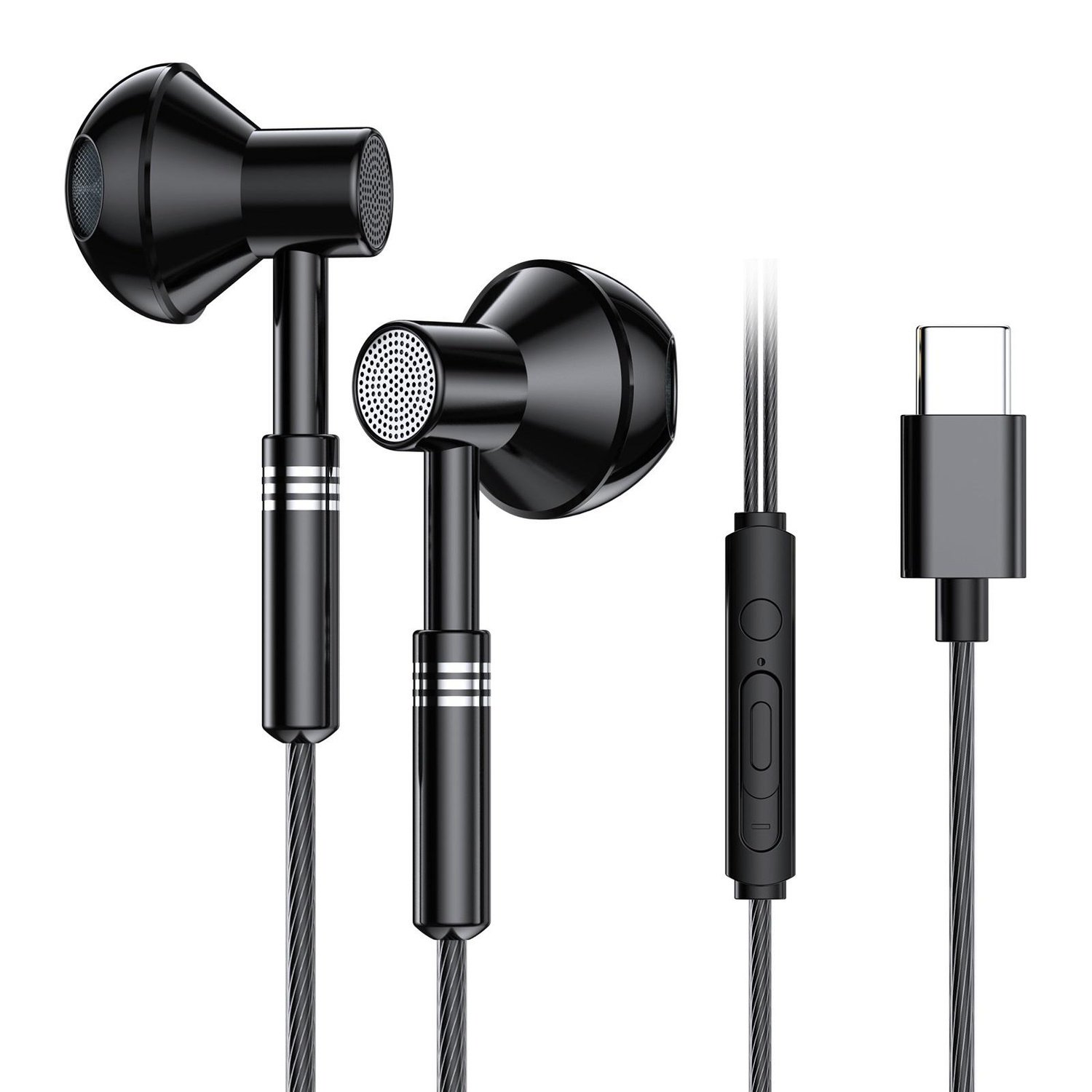 USB-C In-Ear Hörlurar med Sladd DAC Svart