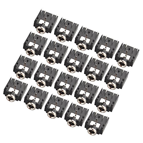 HALJIA 20 st 3,5 mm 5 stift DIP PCB montering uttag hörlurar stereo ljuduttag kontakt