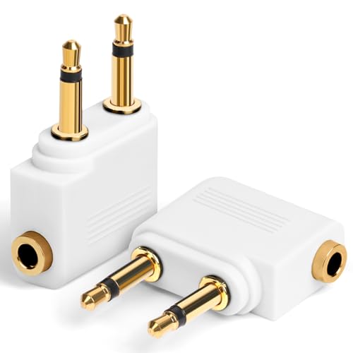 AXFEE Flygplan Adapter, 2 st Guldpläterade Flyg Hörlursadapter, för Universal Flygplan Adapter för Multimediesystem, Vit
