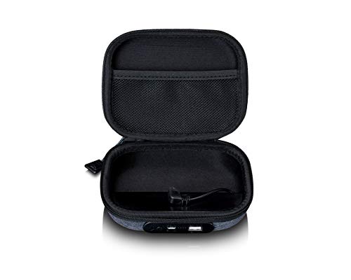 Lenco PBC-20 – hörlursfodral med inbyggd powerbank – hörlursbärväska – 2200 mAh powerbank – med mikro-USB-kabel – USB- på och utgång – grå