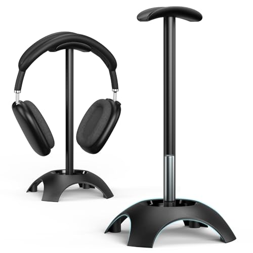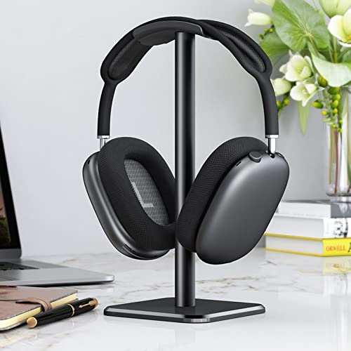 Hörlursställ, Universalhållare i Aluminiumlegering för Alla Typer Av Headset, TPU-bricka, Anti-Slip Base, Metal Bar, PC Gaming Headset Display för Alla Hörlursstorlekar (Svart)