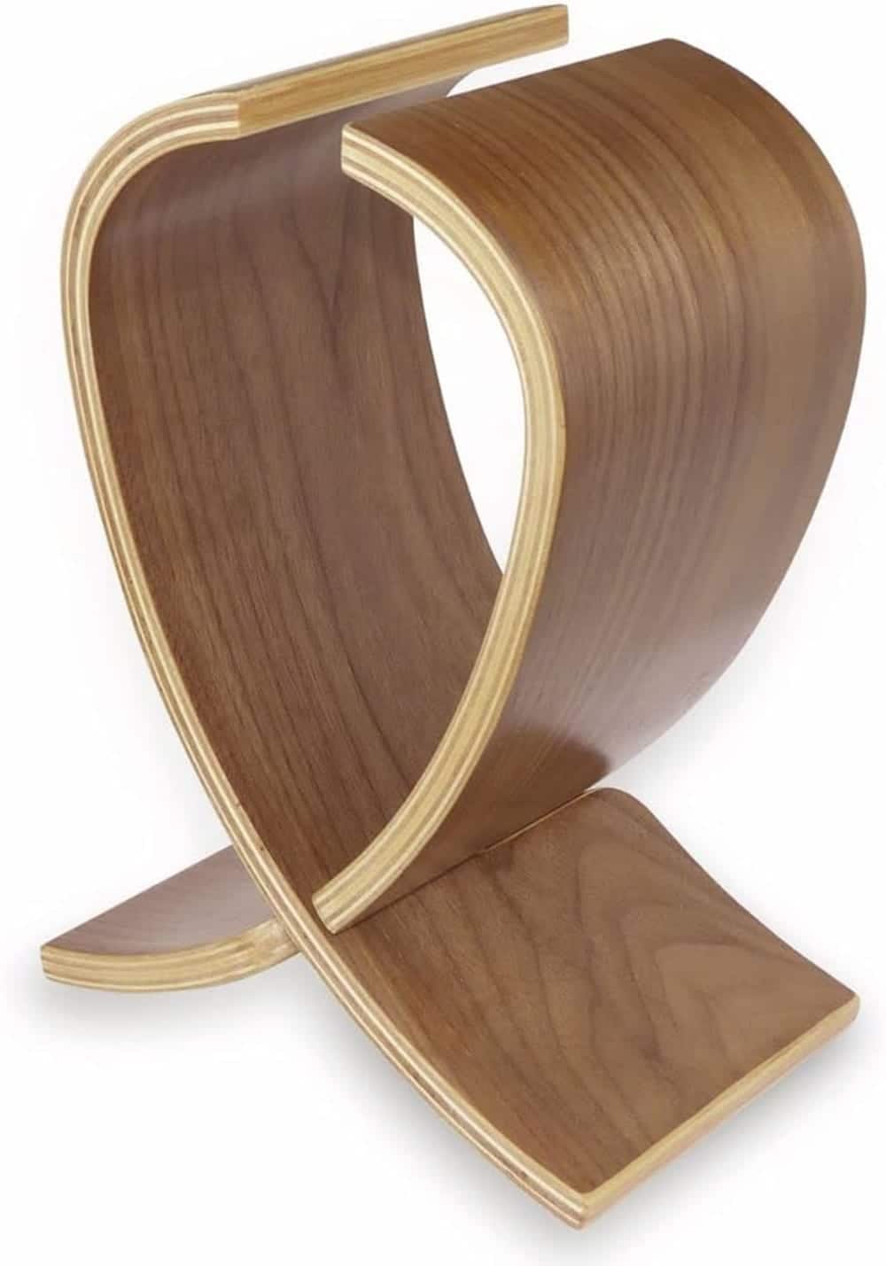 Kalibri Trä Omega hörlursstativ - universellt headset trähängare - hållare för spelheadset DJ studio hörlurar och hörlurar display - valnöt