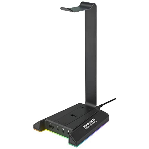 myWall HK2L hörlurshållare, hörlursstativ med RGB ljuseffekt och 7,1 virtual surroundeffekt, med 2 USB-portar, spelheadset stativ för alla hörlurar i svart, 11,8 cm