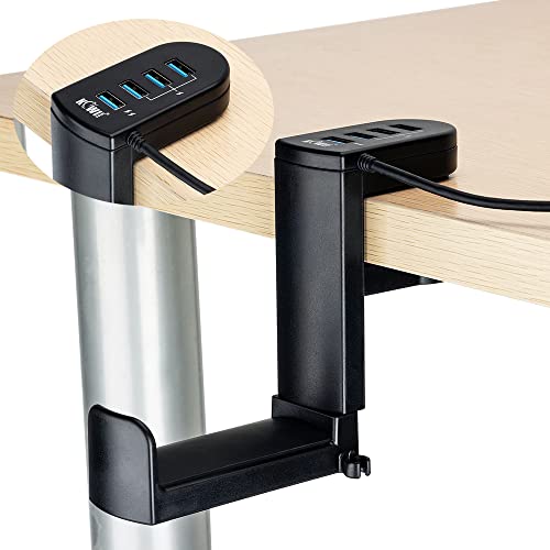 KIWIFOTOS Hörlursstativ hållare med 360° vridbar headsethängare + justerbar fjäderklämma, stationärt spelheadsethållare krok montering – med USB 3.0 x 1 + USB 2.0 x 3