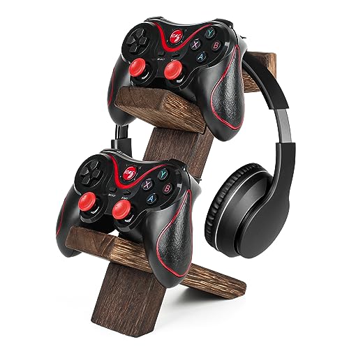 Spelkontrollhållare, headsetstativ, 2-nivås universalkontroll, spel, PC-tillbehör, förvaringsställ, hörlursstativ för Xbox-serien, PS5, PS4 från Wood