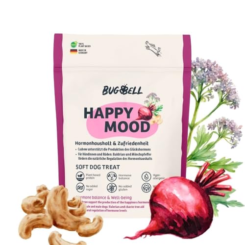 BugBell mjuk hundgodis 60 g, för en balanserad hormonbalans, aggressioner hos hunden, med rödbeta, cashew, munkpeppar, valeriana, L-tryptophan