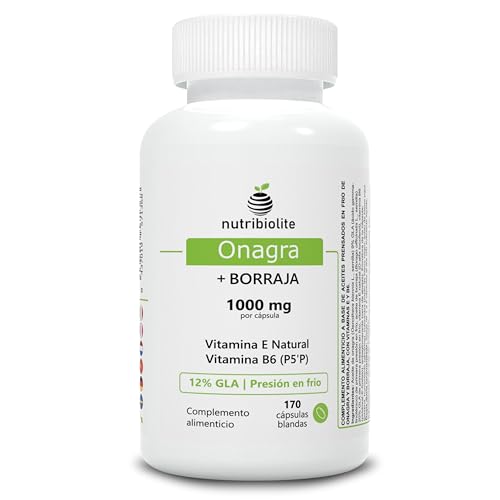 Nattljusolja & Gurkörtsolja 1000 mg – 12% GLA, Naturligt E-vitamin och B6 P5P för hormonbalans, PMS, menopaus och hudhälsa | 170 Mjukgelkapslar – Nutribiolite