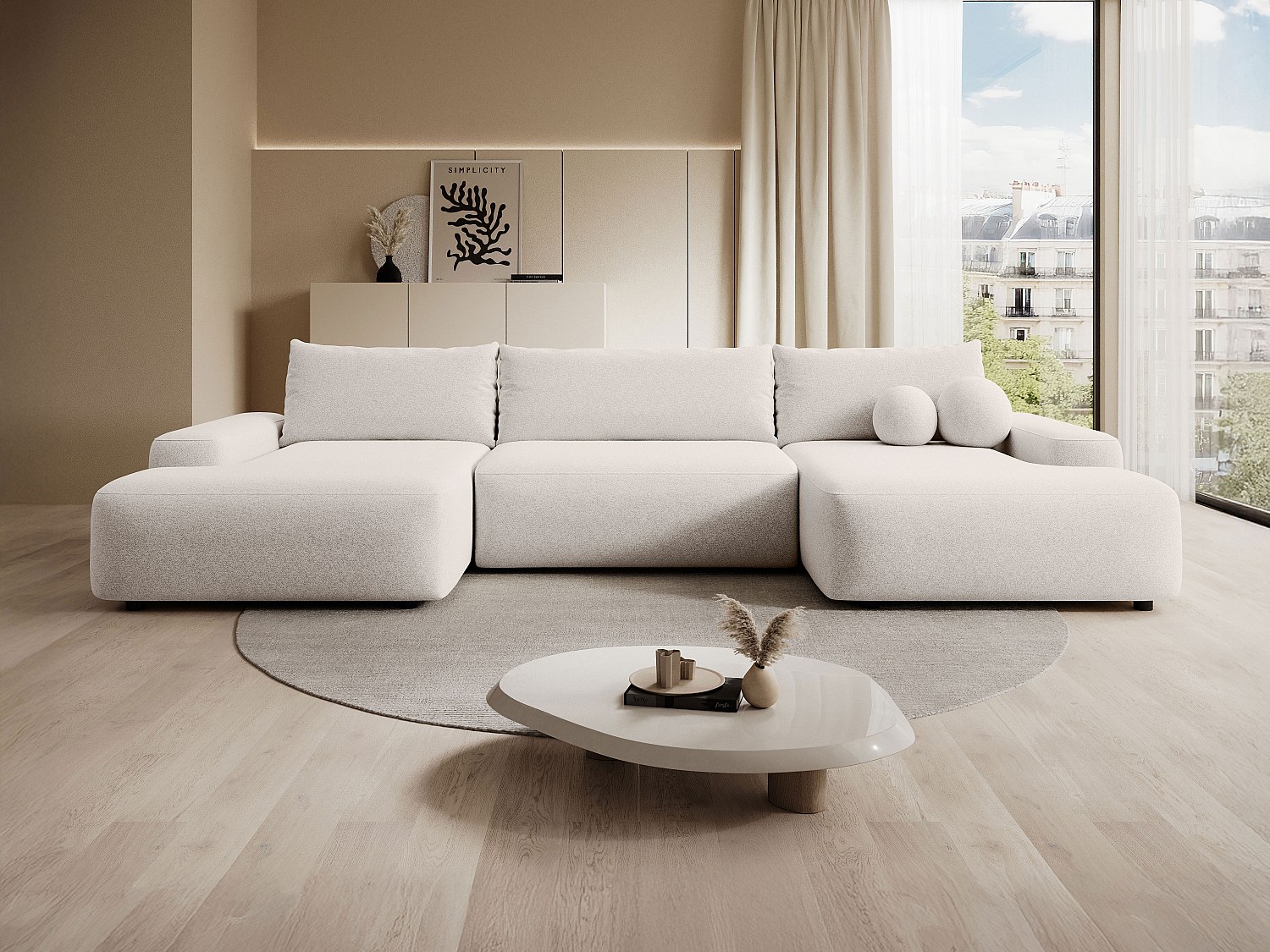 Stor panoramavänd hörnbäddsoffa i krämfärgat texturerat tyg DAVISO