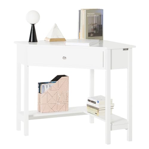 SoBuy Hörnbord med 1 lådor, Skrivbord, vit 76 * 76 cm FWT31-W