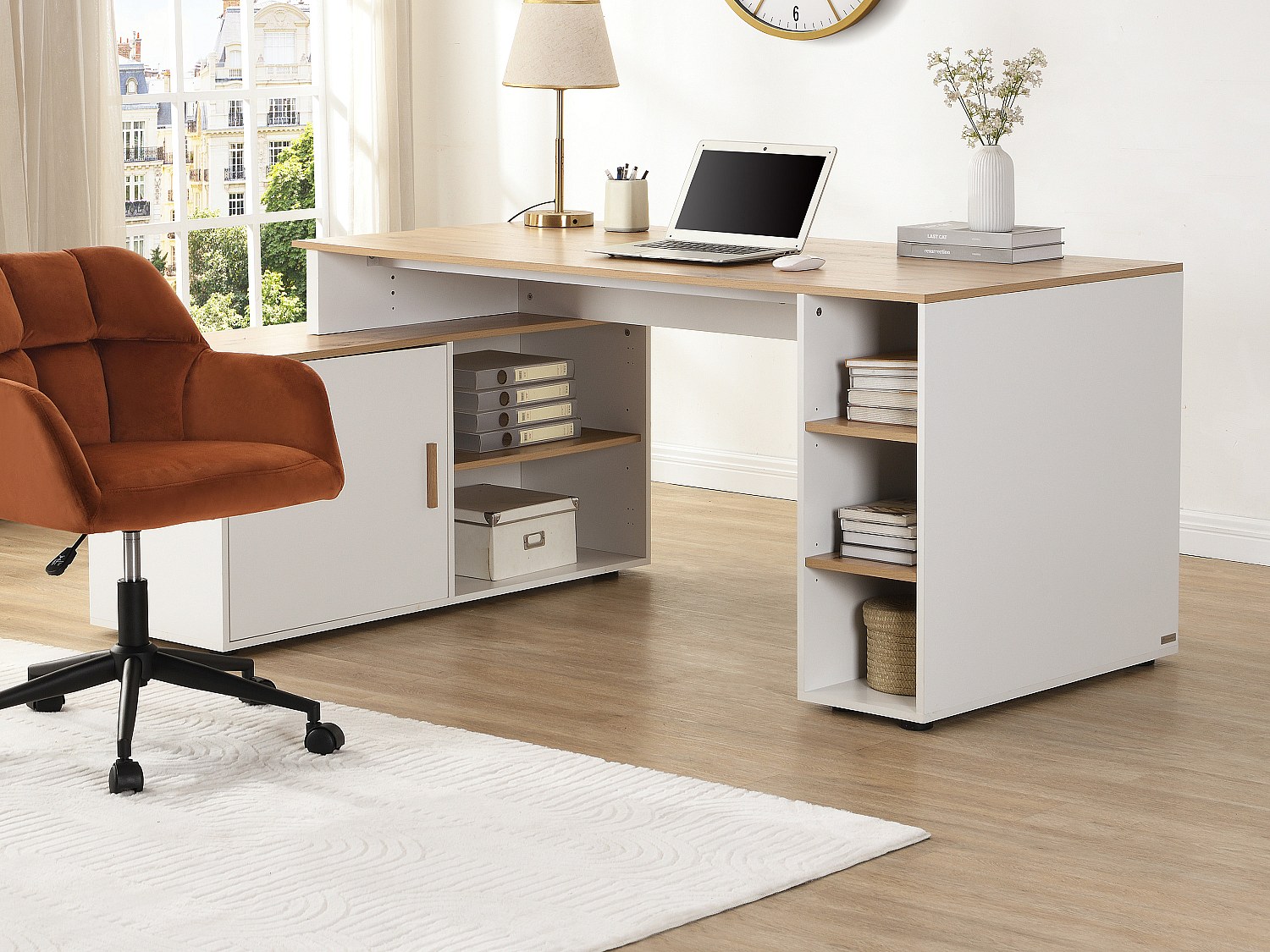 Hörnbord med förvaring - MDF - Vitt och natur - ROMIARA