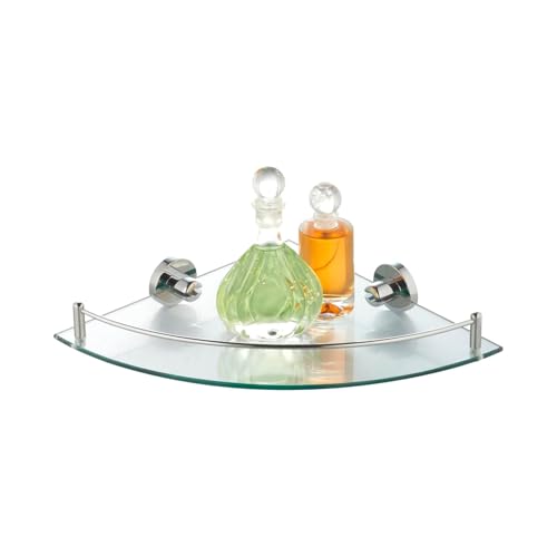 Avilia Hörnhylla för dusch - Hylla för badrum, kök, rum, med skruvar och montering, i härdat glas, kromfinish, 25 x 5,7 x 25 cm