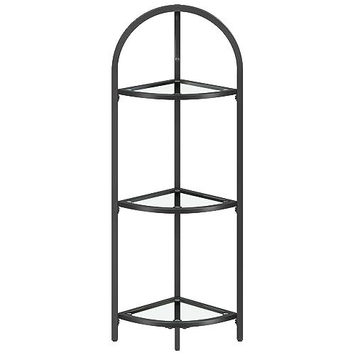 Vasagle LGT811B61 Hörnhylla i 3 plan, bokhylla, växthylla, stående hylla, badrumshylla, hyllor av härdat glas, stålram, modern, för vardagsrum, kök, klassiskt svart