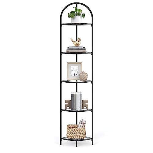 Vasagle LGT810B61 Hörnhylla i 5 plan, bokhylla, växthylla, stående hylla, badrumshylla, hyllor av härdat glas, stålram, modern, för vardagsrum, kök, klassiskt svart