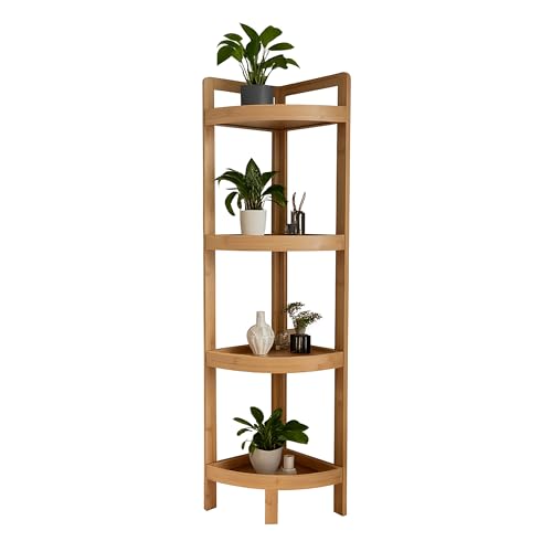 [en.casa] Hörnhylla för badrum kök förvaringsskåp med 4 nivåer med förstärkta bambu kanter 80 x 23 x 23 cm naturlig